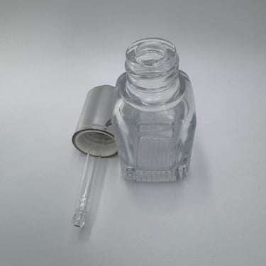 A bottle equipped with a dropper dispenser, mostly used for the dispensing and application of liquid beauty products such as serums, essential oils, and stock solutions