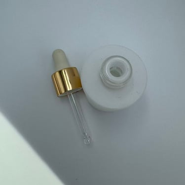 A bottle equipped with a dropper dispenser, mostly used for the dispensing and application of liquid beauty products such as serums, essential oils, and stock solutions